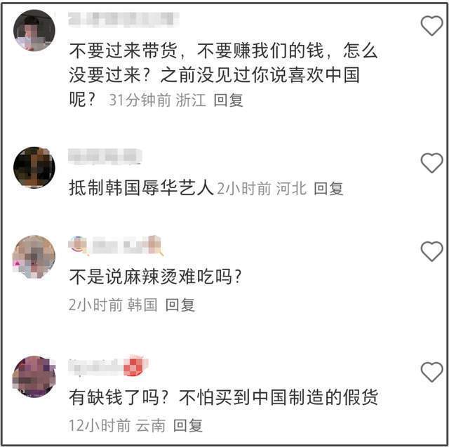 2025年,韩佳人开通了中国社媒平台账号,几乎每一条动态评论区都能看到网友吐槽,最新一条动态韩佳人主动去吃中餐,大夸中国菜好吃,评论区更是直接沦陷,留言几乎都是抵制,不止一位网友喊话韩佳人,让她别想在中国捞金圈钱。